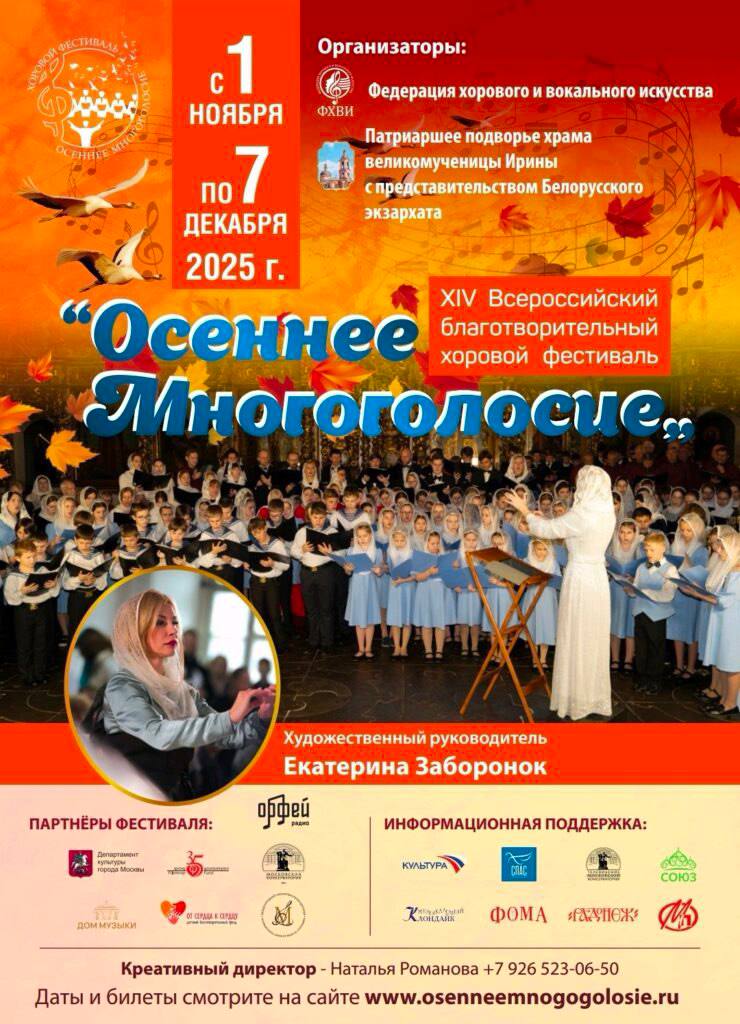 По благословению Святейшего Патриарха Московского и всея Руси КИРИЛЛА 3 декабря 2025 года в Зале Церковных соборов Храма Христа Спасителя состоится гала-концерт участников фестиваля «Осеннее многоголосие» и церемония вручения XII Международной премии «Филантроп» за выдающиеся